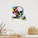 Peinture numérique originale. Un crâne humain réaliste à l'échelle grise, des fleurs sauvages et des papillons colorés poussant à partir d'une prise oculaire. Aquarelle de peinture. Fleurs de soleil jaunes, marguerites roses et violettes et pavots rouges. Design moderne du crâne à sucre. Idéal pour Halloween ou pour ceux qui aiment une touche de gothique.
