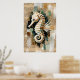 Une Crème & White Seahorse Drift sur un Arrière - plan Abstrait. Pages de livres Vintages Brown entourant le cheval de mer avec une palette de couleurs de terre Abstraite. Ocean Academia inspire cette impression numérique.