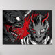 Libérez la bête avec ce design intense "Confrontation double monstre", avec deux créatures formidable, d'inspiration démoniaque dans une composition dynamique et frappante. Sur la gauche, une bête qui serpente avec des dents tranchantes, un bain goutte-à-goutte et des yeux rouges percés domine le cadre. A droite, un personnage mystérieux à cornes, aux yeux tourbillonnants et au regard menaçant complète le duo terrifiant. L'arrière - plan rouge contrasté met en évidence l'énergie explosive qui les sépare, sur un fond sombre et texturé.