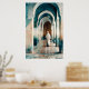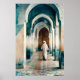 Belle allée d'architecture mauresque et un arabe dans les tons bleu et crème kaki
