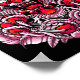 La tête d'un redoutable dragon rouge domine le centre de l'image, ses yeux flambant de fureur. La bouche du dragon est ouverte large, révélant des dents pointues, et ses griffes sont étendues, saisissant des crânes. L'arrière - plan présente des motifs floraux complexes et des lignes tourbillonnantes.