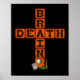 Une croix a le mot "cerveau" sur la verticale et le mot "mort" sur la barre transversale, tous deux partageant la lettre "a". À la base se trouve une pierre tombale, un arbre mort et une lune. Grand cadeau et chemise athée.
