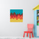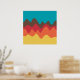 Un design composé de formes irrégulières comme des vagues ou des collines disposées comme un paysage avec une progression de bandes l'une derrière ou sur le dessus d'une autre jouant abstraitement avec la couleur et l'espace. Le design rappelle aussi très bien le son et la musique avec des formes comme des vagues et l'harmonisation des couleurs.