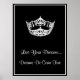 Poster est montré en noir et blanc avec un litho imprimé d'une couronne de reines de concours avec le texte : Vivez vos rêves... Les rêves se réalisent. Customisez cet objet ou achetez tel quel. Choisissez un poster de taille différente ou changez de couleur. Image sous licence