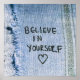 Croyez en vous Blue Denim Motivational C'est adorable apparence de denim bleu passé avec l'écriture noire. Comme quand on était à l'école dans les années 90. Il lit CROIRE EN Toi avec un petit coeur mignon. C'est mignon, motivant et inspirant. C'est adorable.