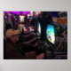 Cruisin' the Light Exotic. 2016, Ken Gage. Photo prise le 3 février 2016 à l'Arcade des Mondes de Star à DeKalb, Illinois. Les concepteurs de jeux Eugene Jarvis (Defender, Stargate, Robotron) et Jeff Lee (Caveman, Q*bert, Mad Planets) se disputent le jeu de course Cruis'n Exotica sous le regard des joueurs passionnés.