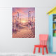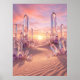 A mesmerizing fantasy desert filled with towering crystal formations glowing under a soft pastel sunset. The warm golden light reflects through translucent crystals, creating a dreamy and magical atmosphere. This artwork blends surreal beauty with calming tones, making it perfect for modern interiors, aesthetic spaces, or anyone drawn to fantasy, spirituality, and serene landscapes.