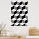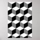 Illusion optique de formes créant le motif de cubes en noir, blanc et gris.