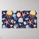 Affiche Cuisine motif sans soudure avec méduse, coquilles,