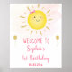 Bienvenue à vos invités de fête avec une adorable enseigne personnalisée. Encadrez le panneau et affichez-le sur une table près de l'entrée ou montez l'affiche en mousse et montez-le à l'extérieur sur un chevalet. Le design est agrémenté d'un soleil doux, d'une aquarelle rose arrière - plan et d'une fausse feuille d'or.