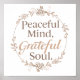 Set a daily intention for tranquility and thankfulness with this elegant graphic. The affirmation, "Peaceful Mind, Grateful Soul," is beautifully framed by a simple, hand-drawn botanical wreath. Its clean and sophisticated design serves as a perfect focal point for meditation, journaling, or simply as a reminder to cultivate inner peace.
