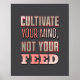 Cette affiche audacieuse et provocante encourage une approche de la vie pleine d'esprit : "Cultivez votre esprit, pas votre alimentation." Avec sa typographie rouge et noire à dégradé frappant sur un arrière - plan sombre, cet article fait une puissante déclaration visuelle, nous rappelant de nous concentrer sur la croissance personnelle plutôt que de se perdre dans les médias sociaux. Parfait pour ajouter de l'inspiration à un bureau à domicile, à un espace d'études ou à tout domaine où la créativité et l'attention sont essentielles.