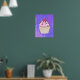 Une affiche avec l'illustration d'un cupcake délicieux. Le gel rose et les gouttelettes de chocolat. Porte-cupcake jaune et framboise sur le dessus. Yummy ! L'arrière - plan est une texture abstraite violette avec de petits coeurs parsemés autour.