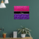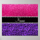Modern and trendy leopard gift ideas. Purple leopard animal print pattern background and neon hot pink glitter (not real glitter) black diamonds stripe (faux diamonds, not real) with hearts and dots personalized with your name gifts or monogram gifts or your initials. Ideal for birthdays, weddings, parties and much more featuring an elegant and traditional fancy lettering.
