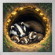 Mignonne affiche en toile avec une illustration en ai d'un blaireau de maman et de ses bébés qui font la sieste dans leur tunnel souterrain appelé un sett.