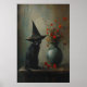 Affiche Cute Black Cat Witch With Dark Botanicals, Dark