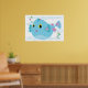 decorate your space with the whimsical charm of this blue tropical fish poster. featuring a delightful cartoon sea creature with pink fins and floral details, this high quality wall art brings a splash of color to any room. the wavy ocean background and bubbly accents make it an ideal choice for a nursery, kids bedroom, or bathroom. this vibrant print is a wonderful way to create an under the sea theme that both children and adults will enjoy.