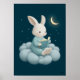 Affiche Cute Bunny Reading on Cloud Nursery Bedtime
