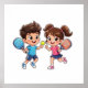 Affiche Cute Cartoon Boy and Girl Playing Padel Tennis – F