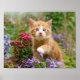 Affiche Cute chaton gingembre dans un jardin jouant avec u