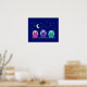 Affiche Cute Colorful Cartoon Owls Night Sky Print