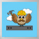 Affiche Cute Construction Worker Owl with Hard Hat Cartoon