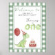 Fête anniversaire de enfant de l'aquarelle. Aquarelle Dino en casquette d'anniversaire, gâteau aux bougies, ballon rouge. Arrière - plan de cage verte.