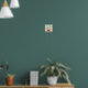 Cute wall art for kids featuring a cartoon illustration of a little fox sitting on a rock in the forest. Beside him are colorful mushrooms and a little bird is peeking out from a nest in one of the trees. Illustration by Mhea.
