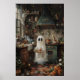 Affiche Cute Ghost Preparing To Eat Print, Floral Kitchen