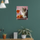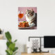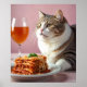 Affiche Cute Gray Chat avec Lasagne et Verre à Vin