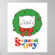 Affiche Cute Kawaii Chat Noël Wreath Saison de joie