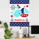 Affiche Cute Nautical Blue Whale et Ancres Motif
