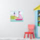 Affiche Cute Pink Sail Boat and Lighthouse