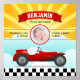 Affiche Cute Retro Red Race Car Baby Photo Birth Stats