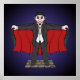 Un mignon vampire caricaturé habillé comme Dracula dévoile son manteau rouge dans cette oeuvre originale de Richard H. Fay.