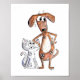 Il s'agit d'une peinture originale sur médias mixtes d'un chien brun fantaisiste et d'un chat gris.