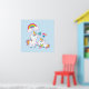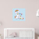 Une affiche avec une licorne de maman blanche avec une crinière et une queue colorées fantaisie. Un bébé licorne posé à côté d'elle, avec une sucette verte dans la bouche. Un arc-en-ciel coloré aux nuages moelleux, et quelques étoiles et coeur décorent ce design doux et adorable. Un contour rose et audacieux entourant l'image lui donne une ambiance de doodle à l'enfant. Arrière - plan pastel bleu clair.