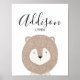 Affiche Cute Wild Animals Lion Nom bébé Nursery Imprimer
