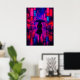 Affiche Cyberpunk City Night avec néon lumières et paraplu