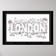 Vélo moderne minimaliste amusant à vélo autour de Londres ligne cool d'art Typographie en noir et rouge poster. Un art de mots simple avec une illustration de vélo détaillée et décalée est un cadeau amusant idéal pour les cyclistes. Les cyclistes de Londres célèbrent la liberté de faire du vélo sur la route même dans nos villes. OEuvre originale de l'artiste Catherine Sweetman