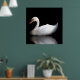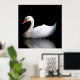 Cygne muet blanc flottant dans un lac avec réflexion dans l'eau contre arrière - plan noir. Clé basse.