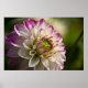 Photo de fond d'un dahlia décoratif blanc aux pointes violettes. Photographie florale de Sabine Steinmüller.