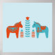 Affiche Dala d'art populaire scandinave Chevaux et fleurs