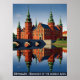 Entrez dans un conte de fées grâce à cette carte postale danoise élégante qui met en vedette le château de Frederiksborg. Avec ses tours en briques rouges, ses flèches vertes et ses reflets d'eau sereins, ce design de style vintage célèbre le romantisme et l'histoire de l'Europe médiévale.