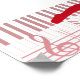 Danseur de ballet rouge sur un clavier entouré de notes de musique, dièses, bémols et une clé de sol