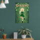 Cette affiche d'Irish Dance Happy Birthday présente une danseuse irlandaise aux cheveux blonds avec un arrière - plan shamrock vert.