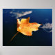 une seule feuille reposant sur un ciel réfléchi dans un bassin d'eau
