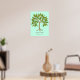 Jolie affiche de mariage ou d'arbre généalogique de couleur verte menthe, avec des graphiques d'un arbre de couleur beige avec des feuilles vertes colorées. Personnalisez le texte marron, en bas, puis laissez vos invités signer l'affiche comme un beau souvenir de mariage. Ou utilisez-la comme affiche d'arbre généalogique, en ajoutant les noms des membres de votre famille.