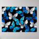 Affiche Dark Seamless Pattern with Blue Butterflies Morpho