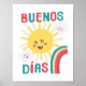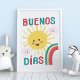 Buenos dias! Accrochez cette affiche joyeuse dans la chambre de votre nouveau bébé ou enfant. Le soleil, les nuages et les arcs-en-ciel brilleront vivement dans toute maison bilingue et hispanophone.